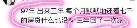 97年,出來三年,每個(gè)月7000房貸之后什么也沒有,3年只回了一次家。