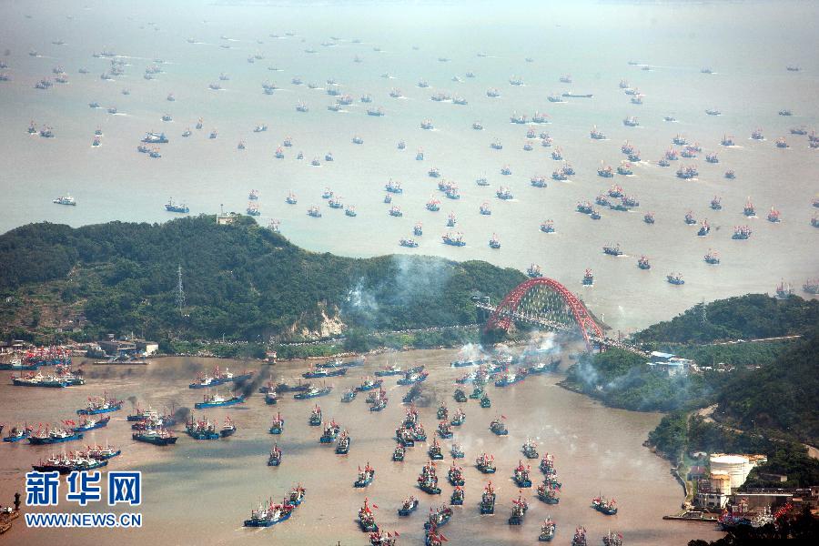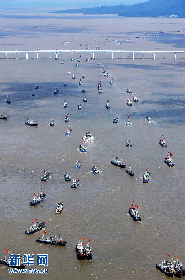 9月16日,浙江省舟山市沈家門漁港的漁船出港經(jīng)過朱家尖大橋開赴漁場。當日,為期3個半月的東海伏季休漁結束,眾多漁船劈波斬浪,開往漁場。 新華社發(fā)(華志波 攝)