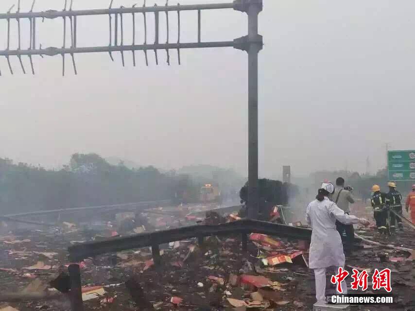 據(jù)江西省高速部門(mén)10月30日消息,當(dāng)日15:20左右,距離滬昆高速公路分宜互通2公里處發(fā)生油罐車(chē)爆炸事件,爆炸導(dǎo)致分宜收費(fèi)站內(nèi)辦公樓和宿舍大面積玻璃碎裂。現(xiàn)場(chǎng)圖片顯示,有大量煙花爆竹燃燒痕跡。目前,江西省高速、交警、醫(yī)護(hù)、消防等相關(guān)部門(mén)已在現(xiàn)場(chǎng)。事故情況正在進(jìn)一步核實(shí)中,傷亡情況未知。(李琴 攝)