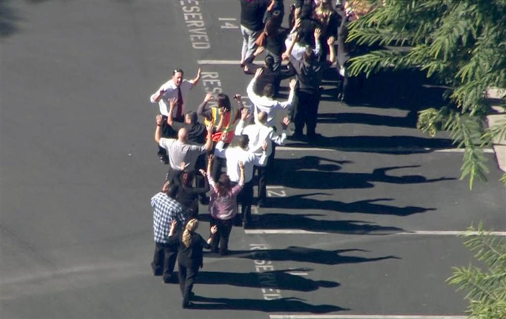 12月3日,美國(guó)加利福尼亞州的圣貝納迪諾(San Bernardino)發(fā)生槍擊,受害者多達(dá)20人,圖為當(dāng)局疏散人群。