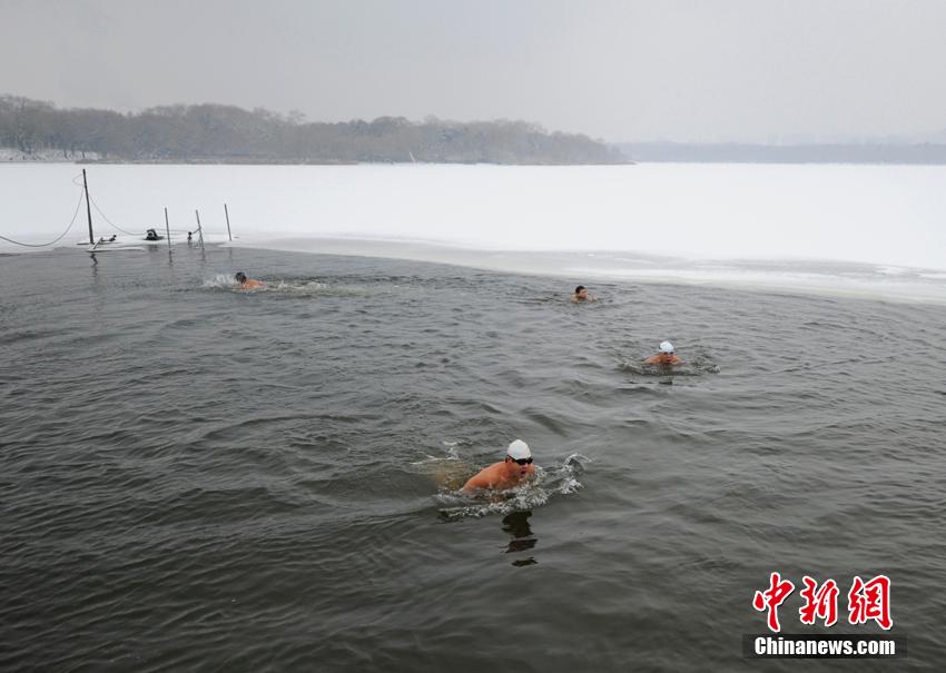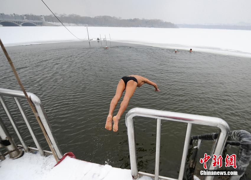12月2日,長(zhǎng)春市民在南湖公園冬泳。一場(chǎng)入冬以來(lái)最大規(guī)模的降雪過(guò)后,長(zhǎng)春市氣溫已達(dá)零下15攝氏度,但對(duì)于冬泳愛(ài)好者來(lái)說(shuō),這恰是他們享受冬季快樂(lè)的開(kāi)始。 張瑤 攝