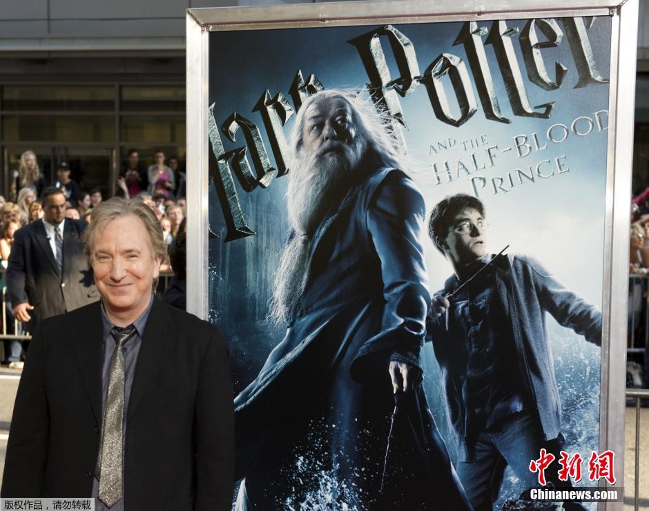 圖為2009年7月9日,英國男演員阿倫·瑞克曼(Alan Rickman)在紐約參加《哈利·波特與混血王子》的首映禮。