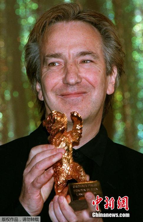 圖為1996年2月26日,英國男演員阿倫·瑞克曼(Alan Rickman)憑借《理智與情感》獲得第46屆柏林電影節(jié)金熊獎。