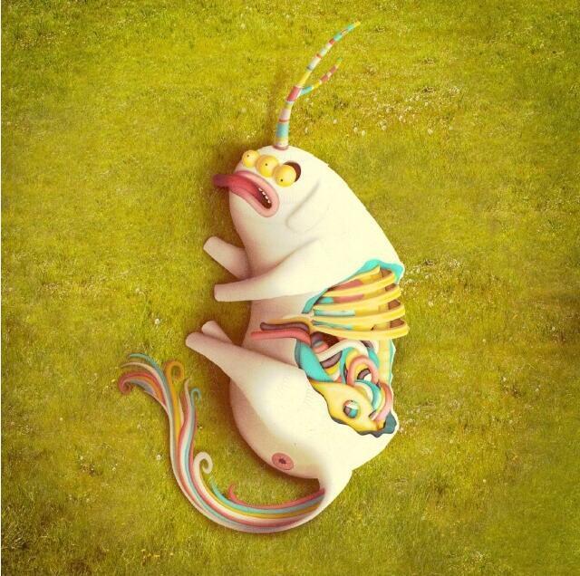 以下是創(chuàng)作“萌萌熊掌中國龍”的藝術家Juan Carlos Paz的“萌怪獸”系列作品,大家隨便感受下……