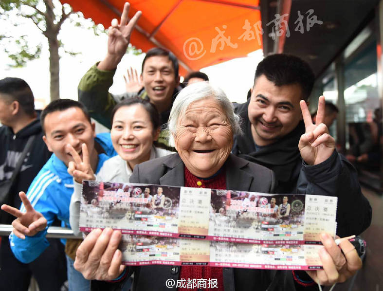 可以說,為了買到一張球票,真是要把吃奶的力氣都拿出來。然而,在一票難求的情況下,當(dāng)一位80歲高齡的老太替兒子來排隊(duì)買票時(shí),現(xiàn)場(chǎng)幾百名球迷卻主動(dòng)讓老人插隊(duì),老人最終買到球票。 圖片來源:成都商報(bào)