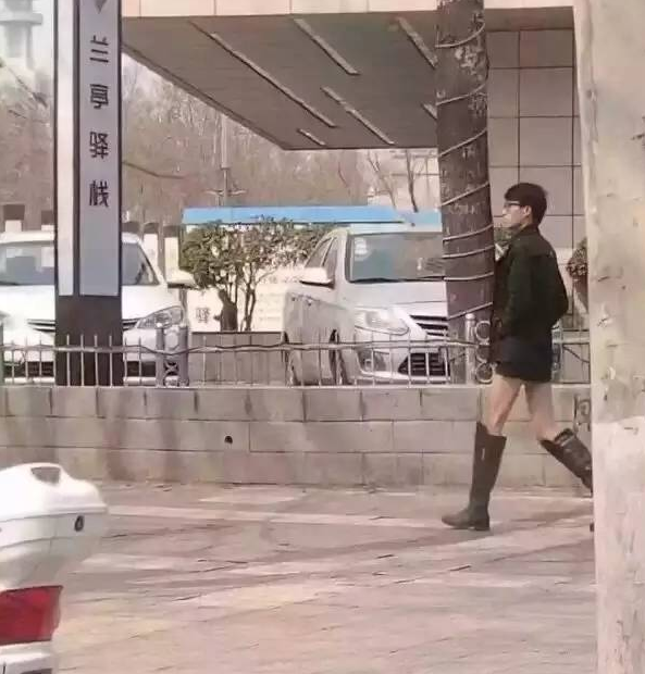 網(wǎng)友對(duì)此評(píng)論:春天來(lái)了,焦作礦山崗樓蘭亭驛站門(mén)口,某位大哥已經(jīng)迫不及待換上了春裝。