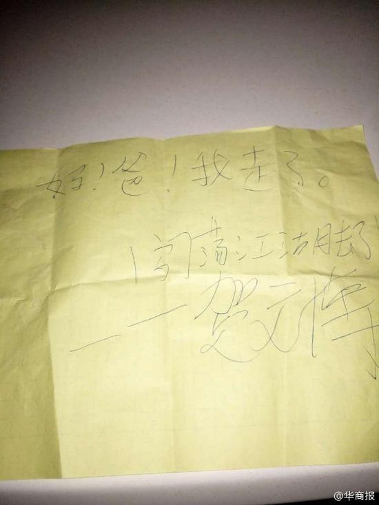 據(jù)賀先生介紹,他是清澗人,在榆林草海則附近打工,5月24日15時左右,賀先生的妻子回到在草海則租房中看到,家里有被翻動的痕跡,剛在家中衣服口袋里的1000元錢不見了,桌子上放了一張紙條,上面是兒子賀文博的字跡:“爸!媽!我走了,闖蕩江湖去了――賀文博”。