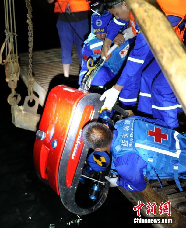 6月6日,四川廣元沉船事故救援現(xiàn)場(chǎng),參與救援的水下機(jī)器人先后兩次下水,并通過(guò)攝像頭在翻沉的“雙龍”號(hào)船內(nèi)發(fā)現(xiàn)有遇難者以及一些漂浮物品。圖為救援人員將水下機(jī)器人抬放入水。中新社記者 劉忠俊 攝
