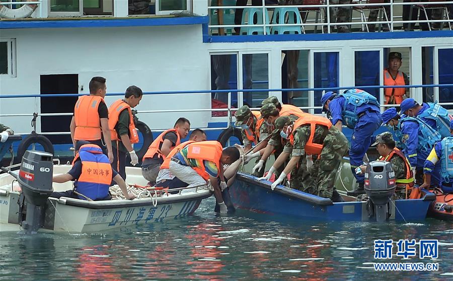 打撈遺體現(xiàn)場(chǎng)。截至目前,這起事故已造成2人死亡、13人失蹤,搜救工作仍在進(jìn)行中。 新華社記者薛玉斌攝 圖片來(lái)源:新華網(wǎng)