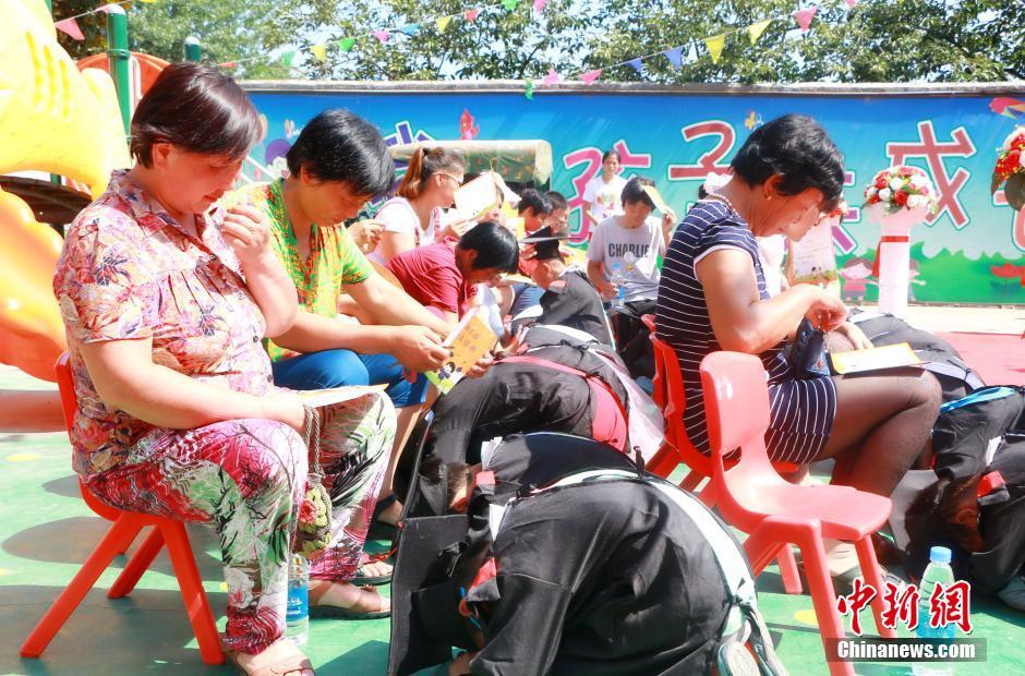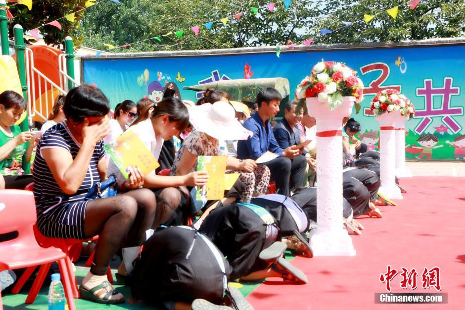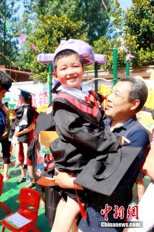 又到一年畢業(yè)季,6月20日,河南商水縣鄧城鎮(zhèn)留守兒童幼兒園60名孩子迎來了一場(chǎng)特殊的畢業(yè)典禮。孩子們身穿迷你學(xué)士服,自信地走紅毯、拋學(xué)士帽。在跪謝父母養(yǎng)育之恩的環(huán)節(jié),因?yàn)榇蟛糠趾⒆邮橇羰貎和⒆觽冎荒芄蛑x爺爺奶奶的照顧,許多家長(zhǎng)在現(xiàn)場(chǎng)感動(dòng)落淚。葉青 攝