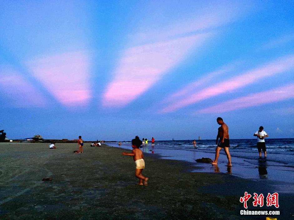 6月27日,廣西北海僑港海灘現(xiàn)晚霞奇觀。受副熱帶高壓影響,廣西連日持續(xù)高溫天氣,而高溫“燒”出的晚霞美景美不勝收,不少市民和游客趁傍晚時(shí)間趕海消暑,一并欣賞迷人晚霞。據(jù)廣西氣象臺(tái)預(yù)計(jì),未來幾天高溫持續(xù),28日將進(jìn)入本次高溫的最強(qiáng)階段。中新社記者 翟李強(qiáng) 攝