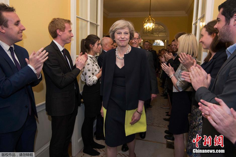 新首相特蕾莎·梅入主唐寧街10號(hào),職員們夾道鼓掌歡迎。