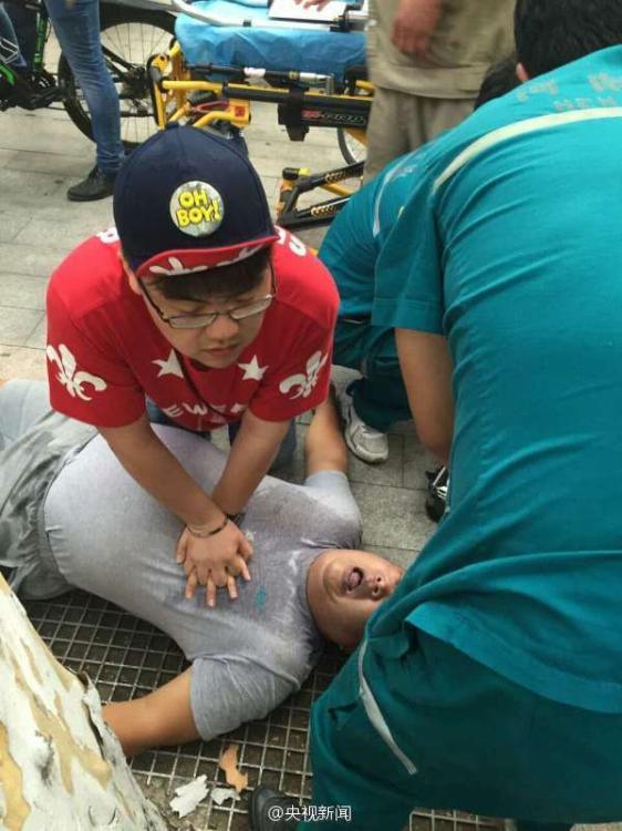 8月9日18點30分,鄭州人民醫(yī)院男護(hù)士李笑展在趕赴約會的路上,見路邊一50多歲的先生倒地,口唇發(fā)紫呼吸困難,他立即上前對其采取了胸外按壓急救措施;待急救車趕到,他協(xié)助救援,直到病人病情穩(wěn)定才離開。 央視記者 邱寶華 圖片來源:央視新聞微博