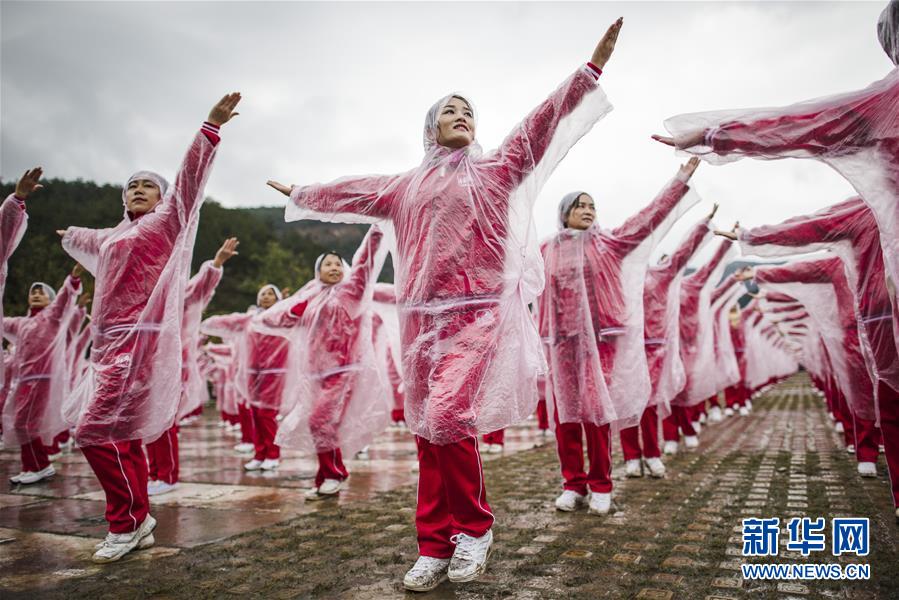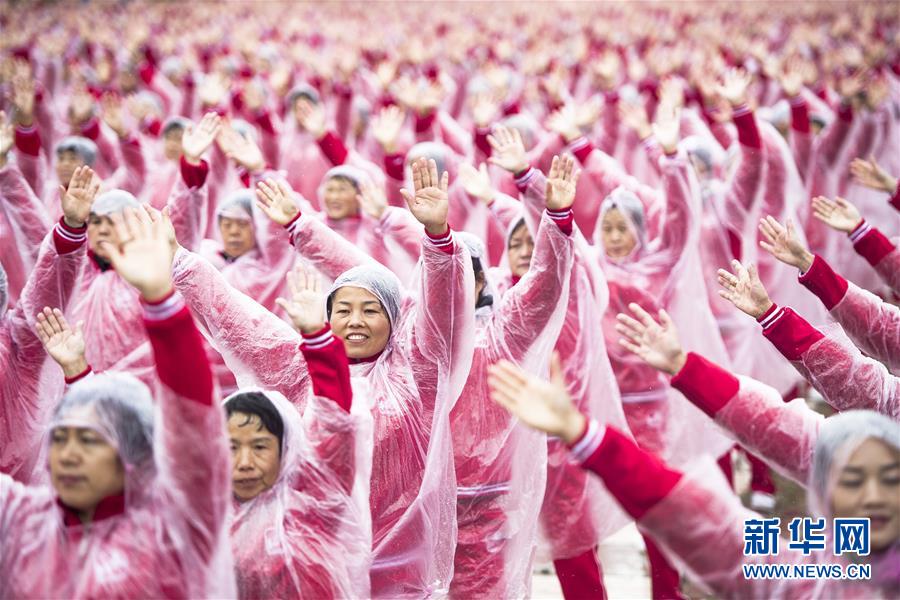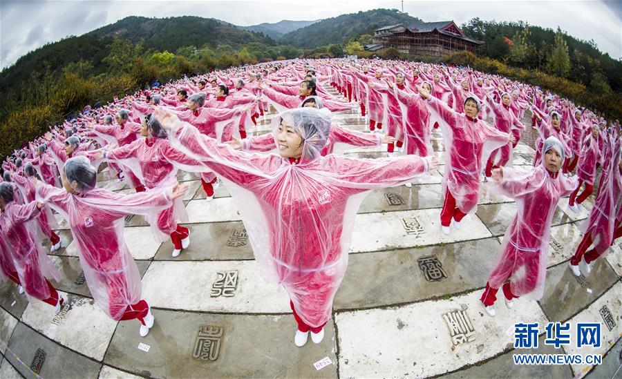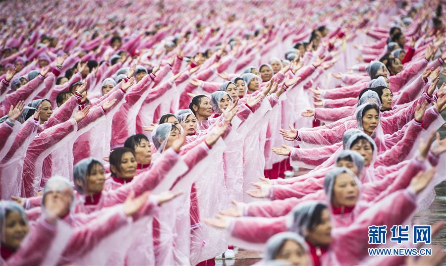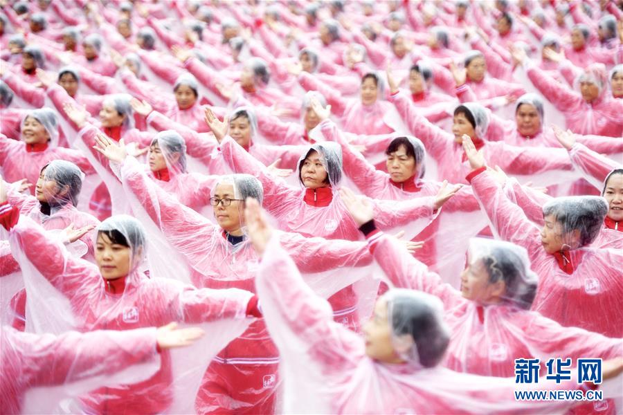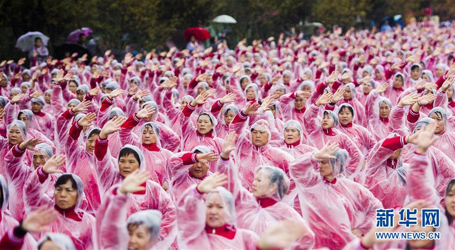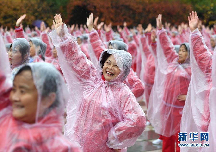 11月7日,在武漢黃陂云霧山,廣場舞愛好者一同起舞。當(dāng)日上午,在天津、北京、上海、武漢、濟(jì)南等14個城市的不同場地上,50085人共同起舞,創(chuàng)下新的最大規(guī)模排舞(多場地)吉尼斯世界紀(jì)錄。新華社記者肖藝九攝