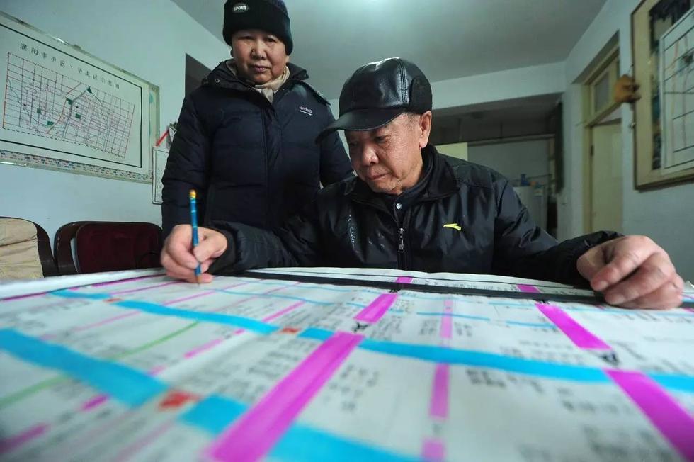 于是,76歲的他開始白天騎車走街串巷,沿途掏出紙和筆進行勾勒、記錄,標注街道、商鋪、路線,畫出簡易地圖;晚上,他就從廚房拿出面板,當作繪圖板認真畫圖。就這樣,他利用兩年時間,繪制完成市區(qū)主要單位商鋪示意圖、華龍區(qū)主要單位商鋪示意圖、濮陽市道路交通圖等4張地圖,成為當前濮陽市最新地圖。