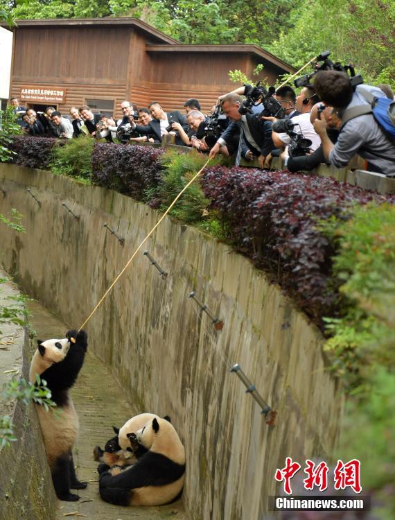 5月2日,丹麥首相拉斯穆森來到成都大熊貓繁育研究基地看大熊貓,并“品嘗”熊貓窩窩頭。當日,應(yīng)中國國務(wù)院總理李克強邀請,丹麥首相拉斯穆森―行抵達中國成都,開始對中國進行正式訪問,拉斯穆森此訪系其2015年當選首相以來首次訪華,其訪問首站就來到四川成都。中新社記者 劉忠俊 攝