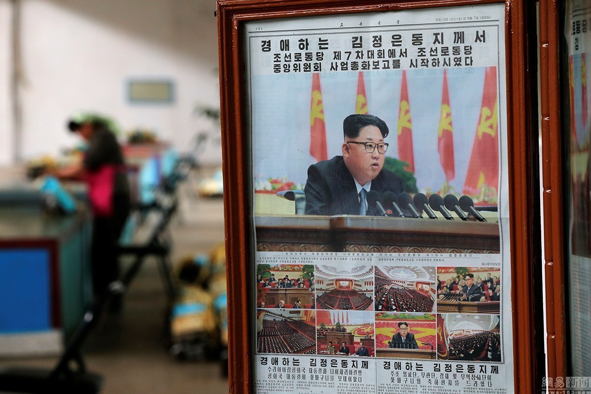 圖為紡織廠大廳內(nèi)放置著報道朝鮮七大相關(guān)內(nèi)容的報紙。