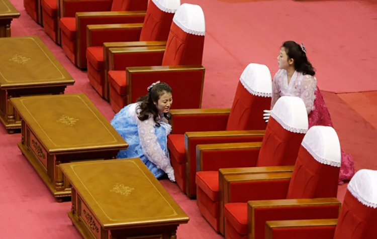 看完了朝鮮空姐,你想知道朝鮮其他職業(yè)女性是什么樣子的嗎?也許是因為影像資料較少,也許是因為傳言太奇幻。朝鮮,在很多人眼里擁有一絲神秘的色彩。路透社這一系列肖像作品以拍攝朝鮮職業(yè)女性為切入點。攝影師克服重重阻難,盡力為我們記錄朝鮮女性真實的工作狀態(tài)。兩位女士在調(diào)整朝鮮最高領(lǐng)導(dǎo)人和客人的座椅。