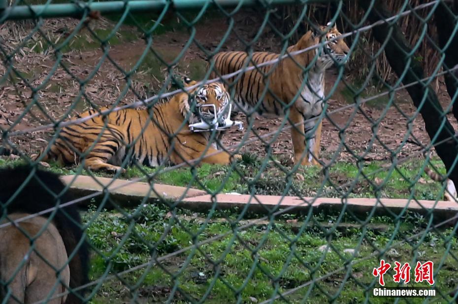 12月2日,有航拍愛(ài)好者在重慶樂(lè)和樂(lè)都野生動(dòng)物世界虎區(qū)用無(wú)人機(jī)拍攝老虎(經(jīng)景區(qū)許可后在安全監(jiān)護(hù)下拍攝),不料在飛到距離地面約三米高度時(shí),一頭老虎迅速跳躍起來(lái),一掌將無(wú)人機(jī)擊落。王成杰 攝