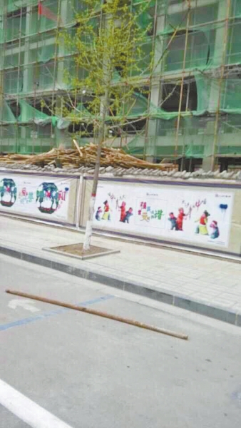 4月8日上午,許昌市區(qū)府前街南側(cè)。距離人行道約7米遠(yuǎn)的南面,是一棟在建的6層高樓房。從外觀上看,該樓房剛剛封頂,而樓體外的防護(hù)網(wǎng)卻已經(jīng)支離破碎。目前,該工地已被勒令停工。