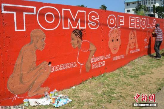 當?shù)貢r間9月8日,在利比里亞,蒙羅維亞街頭,一名叫斯蒂芬·多伊的藝術家在墻上創(chuàng)作壁畫向人們介紹致命的埃博拉病毒病發(fā)癥狀。世界衛(wèi)生組織8日發(fā)出警告,利比里亞已經(jīng)成為西非受埃博拉疫情肆虐最嚴重的國家,該國因疫情死亡的人數(shù)已經(jīng)占整個西非發(fā)病死亡人數(shù)的一半以上。