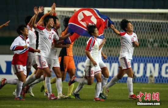 10月1日,在仁川亞運(yùn)會(huì)女足決賽中,朝鮮隊(duì)以3比1戰(zhàn)勝日本隊(duì)獲得冠軍。中新社記者 湯彥俊 攝