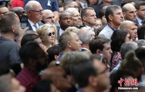 資料圖:當地時間9月11日,“911”15周年紀念活動在美國紐約911紀念公園舉行,圖為美國民主黨總統候選人希拉里出席當天的紀念活動。 中新社記者 廖攀 攝