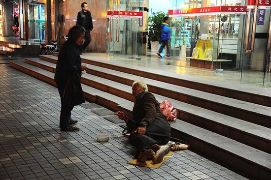 據(jù)介紹,山東、東北等地域的職業(yè)乞討群體算是這一特殊群體中的“狠角色”,也是比較“會演戲”的群體。他們有的大冬天光著上身,不穿鞋子,雖然救助管理機(jī)構(gòu)為他們免費(fèi)送過棉衣、棉鞋,但他們?nèi)允遣淮?。他們的小算盤是:穿了棉衣,不再可憐,怎么會有人給錢呢?還有的假裝重病躺在地上,身上蓋個白布,身旁一同伙哭天喊地,來欺騙市民給錢。