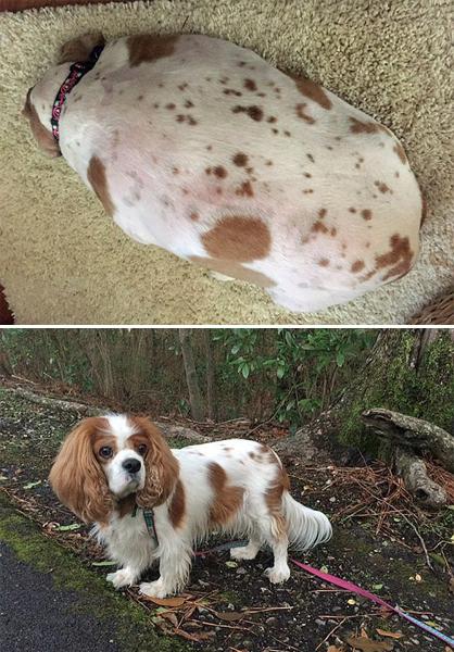 阿比之前總是暴飲暴食,而且也不鍛煉。久而久之,它變得越來越胖,每走一步都要停下來喘喘氣,因此只能坐在小推車?yán)锉蝗送浦摺?016年5月,阿比主人的鄰居很擔(dān)心它的健康情況,于是聯(lián)系了當(dāng)?shù)氐膶櫸锞仍行摹T撝行牡墓ぷ魅藛T與阿比的主人 溝通后,順利把它帶去了中心幫它減肥。