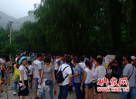 7月23日上午8點(diǎn)鐘的,嵩山盧崖瀑布景區(qū)一改往日的清靜與優(yōu)雅,動(dòng)感的音樂(lè)聲陣陣傳來(lái),通往景區(qū)的沿途停滿了大小車輛,還不時(shí)有車輛到達(dá)。
