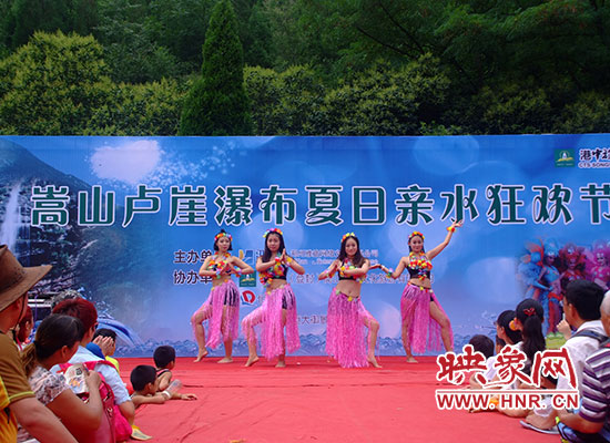 10點(diǎn)鐘,盧崖瀑布景區(qū)盧鴻一雕像人頭攢動(dòng),大家情緒高漲,隨著動(dòng)感音樂(lè)聲減弱,主持人上臺(tái),狂歡派對(duì)開(kāi)幕式正式開(kāi)始,好看的節(jié)目應(yīng)接不暇,音樂(lè)、美女、帥哥!真是一場(chǎng)感觀盛宴?。∮袌D為證!