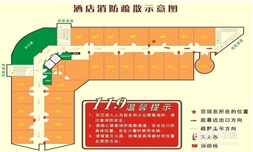 在公共場(chǎng)所的墻面上、頂棚上、門頂處、轉(zhuǎn)彎處,“安全出口”、“緊急出口”、“安全通道”、“太平門”、“火警電話”以及逃生方向箭頭、事故照明燈等消防標(biāo)志和事故照明標(biāo)志。被困人員看到這些標(biāo)志時(shí),馬上就可以確定自己的行為,按照標(biāo)志指示的方向有秩序地撤離逃生,以解“燃眉之急”。