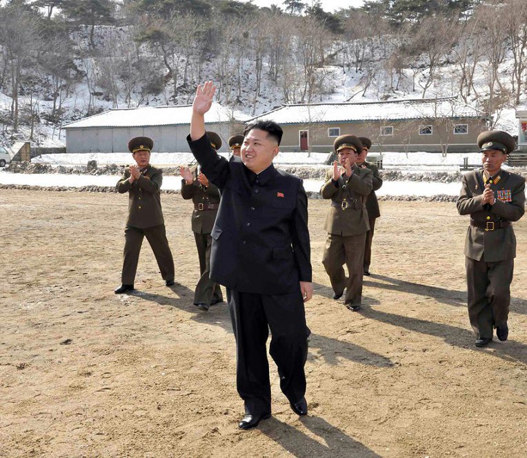 這張朝鮮中央通訊社2012年4月5日提供的照片顯示,朝鮮最高領(lǐng)導人金正恩近日視察了駐守東部海岸前方哨所的麗島防御部隊。