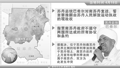 卡塔爾半島電視臺19日援引蘇丹官方通訊社的消息說,蘇丹總統(tǒng)巴希爾當(dāng)天在北科爾多凡州首府歐拜伊德的群眾集會上發(fā)表講話,稱只有用大棒才能懲罰南蘇丹,蘇丹將通過軍事手段解放南蘇丹。