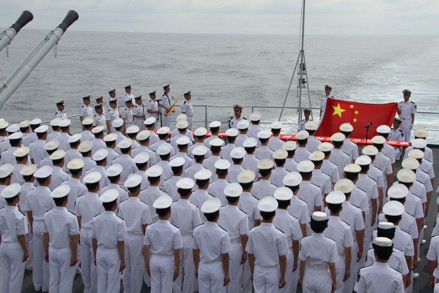 蔚藍(lán)的天空、湛藍(lán)的大海,當(dāng)金色的陽光鋪滿艦體,軍樂隊(duì)奏響雄壯的中華人民共和國(guó)國(guó)歌,在后甲板整齊列隊(duì)的“鄭和”艦官兵代表舉起右手,面向國(guó)旗莊嚴(yán)宣誓,表達(dá)他們對(duì)人民海軍的忠誠(chéng)和熱愛。
