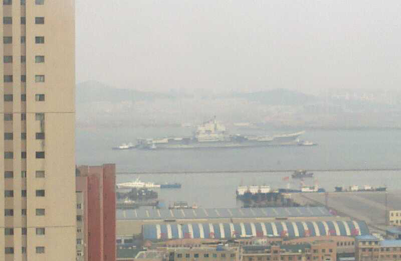 中國航母瓦良格號目前正在大連準備第5次和第6次試航,圖為試航回航時的現(xiàn)場。