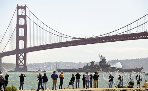 戰(zhàn)艦26日由多艘船只伴隨,由拖船拖曳,通過舊金山金門大橋,駛出舊金山灣,吸引大量民眾觀看。太平洋戰(zhàn)列艦中心主席羅伯特·肯特說:“世界各國海軍中,這艘戰(zhàn)艦最為獨特。其他戰(zhàn)列艦中一些沉沒,一些拆毀,一些變成博物館?!瑠W瓦’號是最后一艘找到歸宿的戰(zhàn)列艦?!?/p>