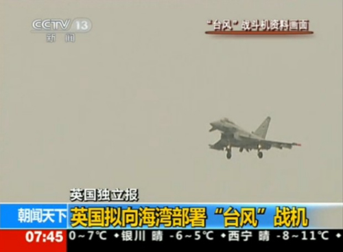 報(bào)道指出,英國考慮部署戰(zhàn)機(jī)的時(shí)機(jī)是,以色列威脅要對(duì)伊朗發(fā)動(dòng)軍事打擊,中東大部分地區(qū)處于“阿拉伯之春”以及敘沖突余波所帶來的動(dòng)蕩中。在這一動(dòng)蕩時(shí)期是否向海灣部署戰(zhàn)機(jī),這將由英國首相卡梅倫在同迪拜和阿聯(lián)酋深入交談后做出決定。預(yù)計(jì)在不久的將來將宣布相關(guān)決定。