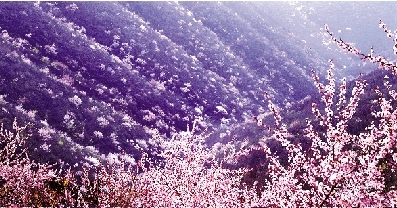 此時(shí)的靳家?guī)X,漫山遍野的桃花迎春怒放,燦若紅云,山腳下成片的梨花如白雪鋪撒大地。加上其他各種時(shí)令花卉,把整個(gè)靳家?guī)X打扮得春意盎然,姹紫嫣紅。