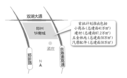 他介紹,位于新鄭的華南城一期首批計劃推出小商品市場和精品交易區(qū),總計158.2萬平方米。精品交易區(qū)包括建材、五金機電、汽摩配件等業(yè)態(tài)。