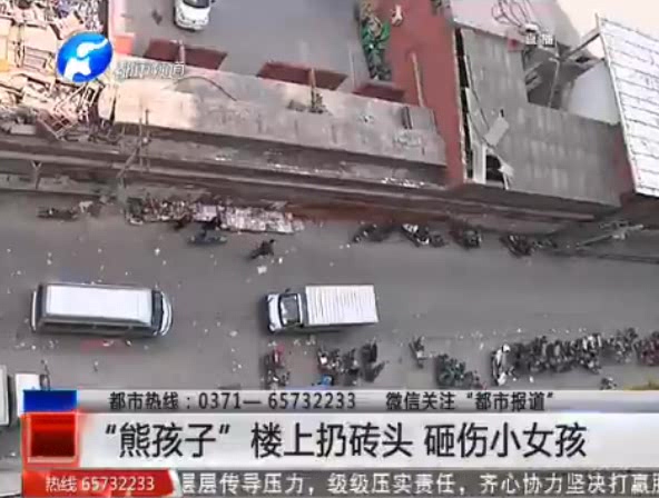 危險!"熊孩子"樓頂扔磚頭砸傷女孩