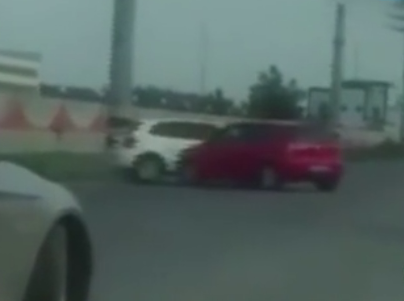 實(shí)拍原配與小三駕車當(dāng)街互撞