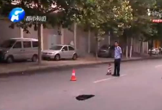 路面突現(xiàn)一小洞 內藏2米大坑
