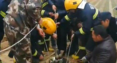 井深60米 消防員倒掛救女童