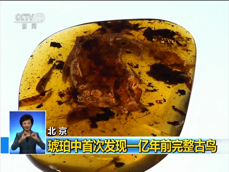琥珀中首次發(fā)現(xiàn)一億年前完整古鳥