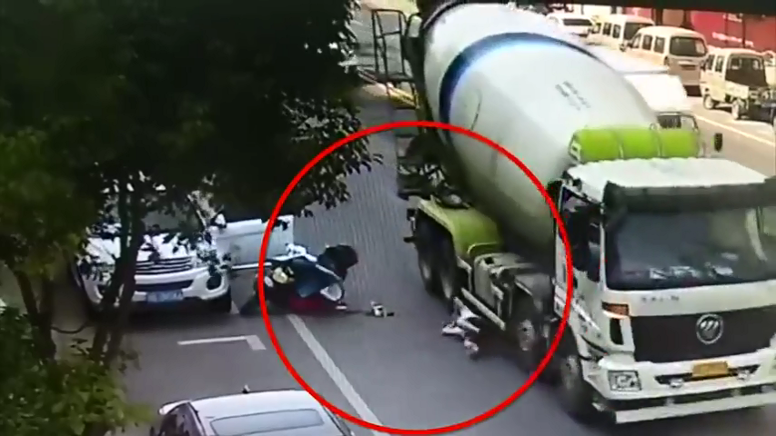 騎車女頭部遭大貨車碾壓 頭盔救命