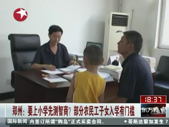 孩子要想接受義務(wù)教育,除了要辦齊各種手續(xù),還要進行智商測驗,開具醫(yī)院相關(guān)證明--這是來自河南南陽鄧州農(nóng)民工魏雙恒的8歲兒子航航在鄭州市建設(shè)路三小求學(xué)時遭遇的難題。