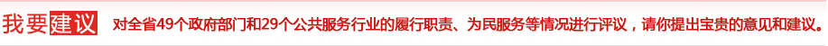 為貫徹落實(shí)黨中央、國務(wù)院關(guān)于加強(qiáng)作風(fēng)建設(shè)的指示精神和省政府關(guān)于"兩轉(zhuǎn)兩提"的要求,努力建設(shè)服務(wù)政府、責(zé)任政府、法治政府和廉潔政府,進(jìn)一步增強(qiáng)公共服務(wù)行業(yè)的服務(wù)意識(shí),切實(shí)加強(qiáng)政風(fēng)行風(fēng)建設(shè),省政府糾風(fēng)辦繼續(xù)在全省各級(jí)政府部門和公共服務(wù)行業(yè)開展以"樹立優(yōu)良作風(fēng),構(gòu)建和諧中原"為主題的民主評(píng)議政風(fēng)行風(fēng)活動(dòng)。河南省人民政府糾風(fēng)辦委托映象網(wǎng)開通網(wǎng)上評(píng)議系統(tǒng),對(duì)全省49個(gè)政府部門和29個(gè)公共服務(wù)行業(yè)的履行職責(zé)、為民服務(wù)等情況進(jìn)行評(píng)議,請(qǐng)你提出寶貴的意見和建議。