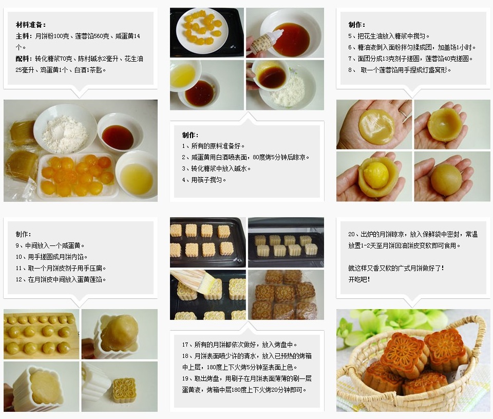 首先是月餅的塊型大小均勻、周正飽滿,薄厚均勻、花紋清晰、表面無裂紋、不露餡。廣式月餅表面圖案標有廠名和餡芯。京式月餅無圖案、品名。劣質月餅塊型大小不均勻……[詳細]