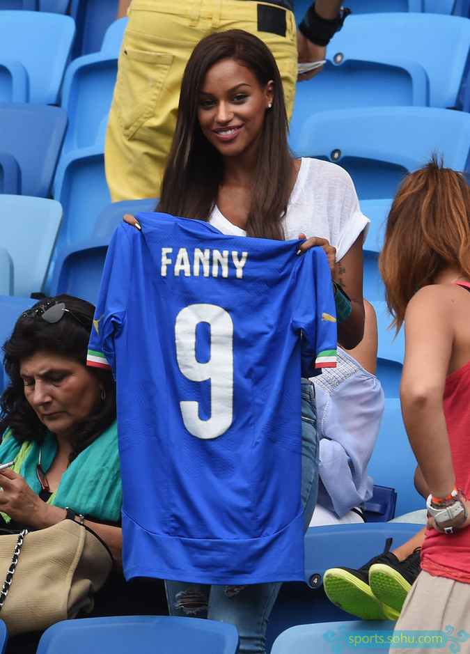 北京時間6月24i,小組賽最后一輪意大利VS烏拉圭。巴洛特利女友又來到現(xiàn)場觀戰(zhàn),她染了頭發(fā),還展示了9號特制球衣。布馮嬌妻也來到現(xiàn)場,還帶來了布馮的兩個愛子。圖為巴洛特利未婚妻舉9號特制球衣
